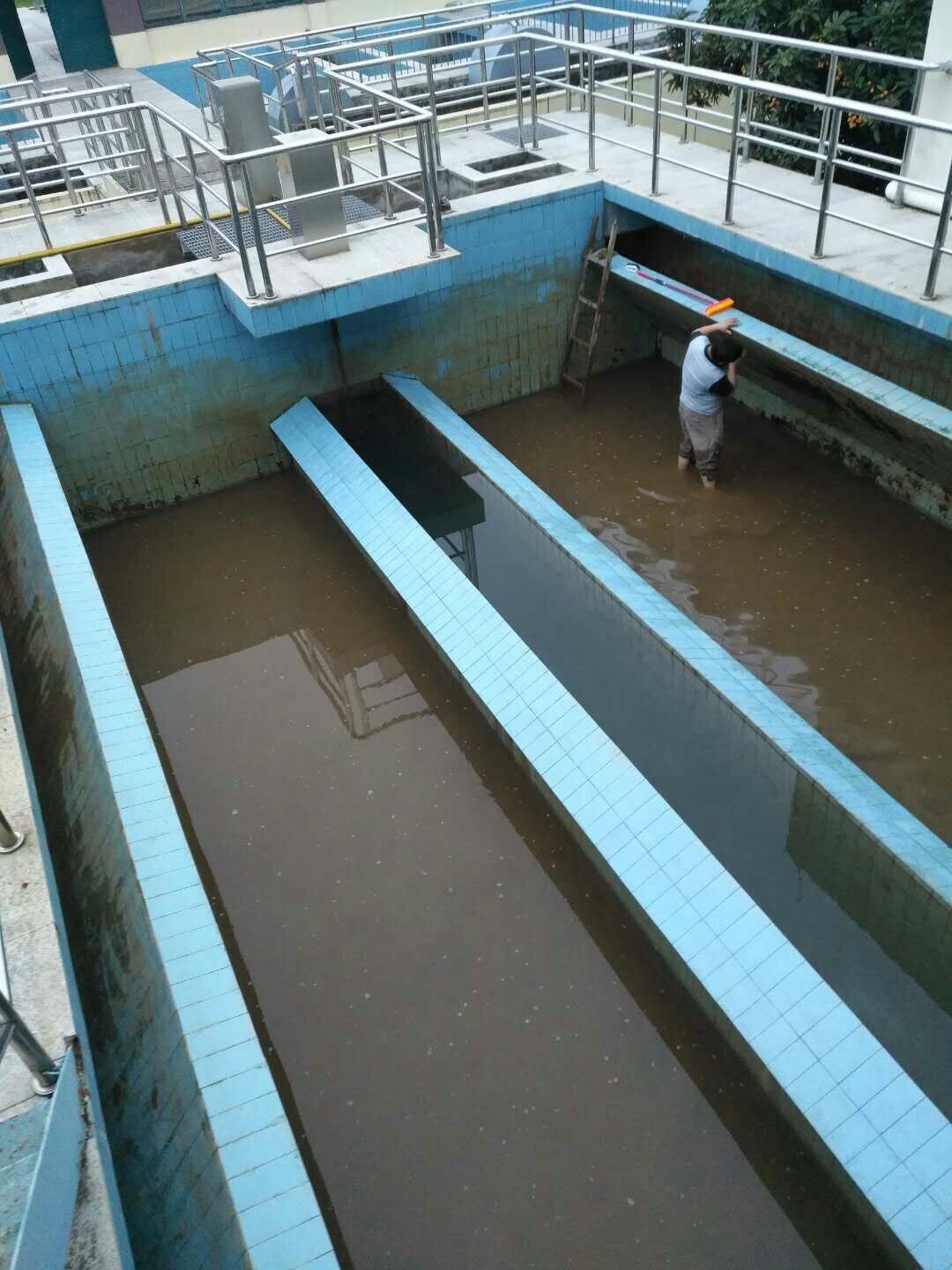 水廠濾池由于長時間不間斷運(yùn)行,給出水帶來污染。在為期2天的清洗工作中,工作人員在濾池中認(rèn)真鏟刮、清掃、沖洗濾池內(nèi)壁殘留不少淤泥、雜質(zhì)、青苔,清理過的濾池內(nèi)壁煥然一新。