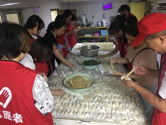 大家各司其職,有的擇菜、洗菜,有的剁餡、和餡,有的包餃子、煮餃子,有的打掃衛(wèi)生,有的陪老人拉家常,了解他們的飲食起居。大家邊聊天邊干活,院里笑聲不斷、其樂(lè)融融。