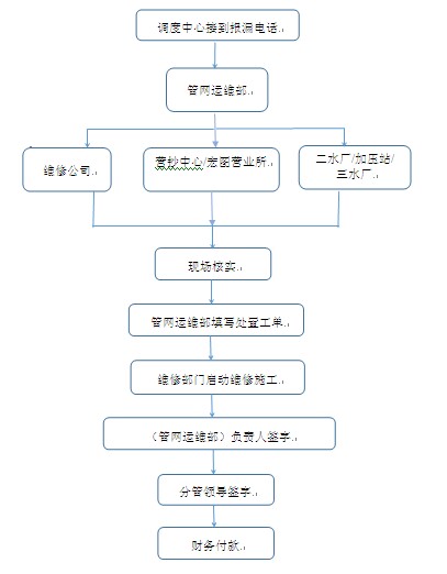 3、市政管網(wǎng):管網(wǎng)運維部聯(lián)系維修公司(或營抄中心、宏圖營業(yè)所);原水管道:管網(wǎng)運維部聯(lián)系二水廠(或加壓站、三水廠);