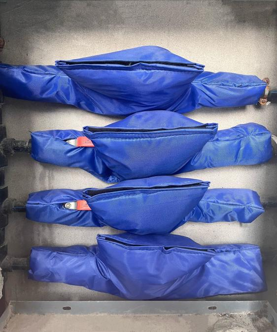 集團充分調研,比對試用多種材質的水表防護套,確定為易凍區(qū)域水表穿戴新型雙面防水“小棉襖”,抵御雨雪浸濕。打開魔術貼,可以直接查看水表,非常便捷