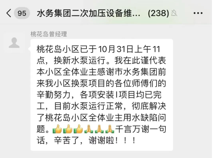 水務(wù)集團(tuán)明確施工計(jì)劃,責(zé)任到人,于10月18日進(jìn)駐桃花島小區(qū),迅速搭建臨時(shí)泵房,確保改造期間居民用水無憂。