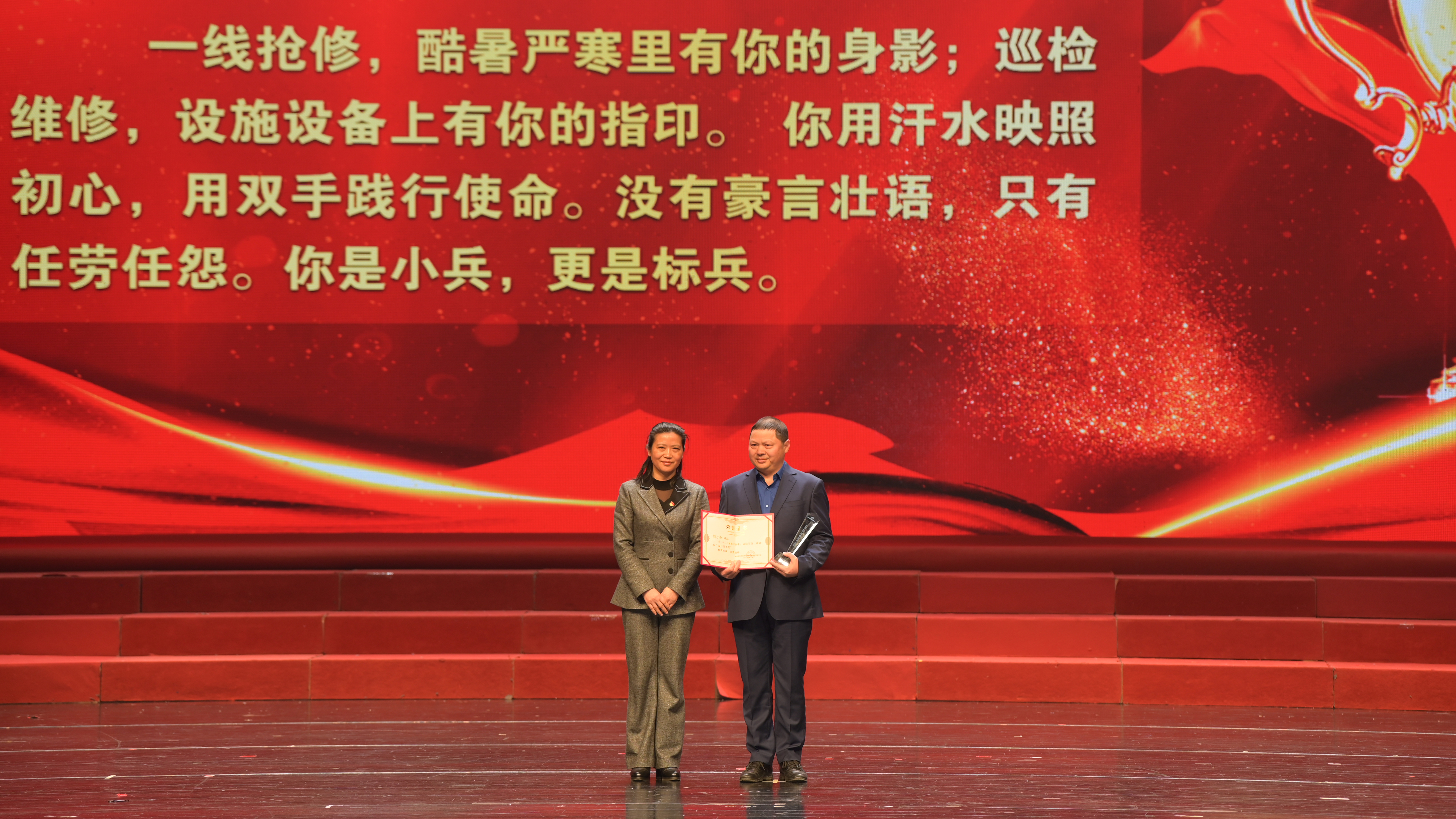 大會(huì)在雄壯的國(guó)歌聲中拉開序幕,黨委委員、副總經(jīng)理徐安祥宣讀《關(guān)于表彰2023年度文明單位、先進(jìn)集體和先進(jìn)個(gè)人的決定》,依次表彰了詠泉水質(zhì)、荊襄供水、潤(rùn)澤建設(shè)公司等7個(gè)先進(jìn)單位(集體)、一水廠維修班等19個(gè)先進(jìn)班組和羅媛媛、丁凌偉等74名先進(jìn)個(gè)人。