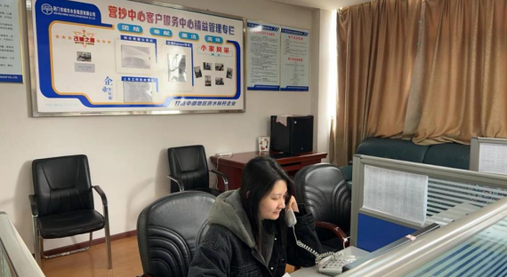 圖為調(diào)度指揮中心新員工在營(yíng)抄中心接聽用戶電話