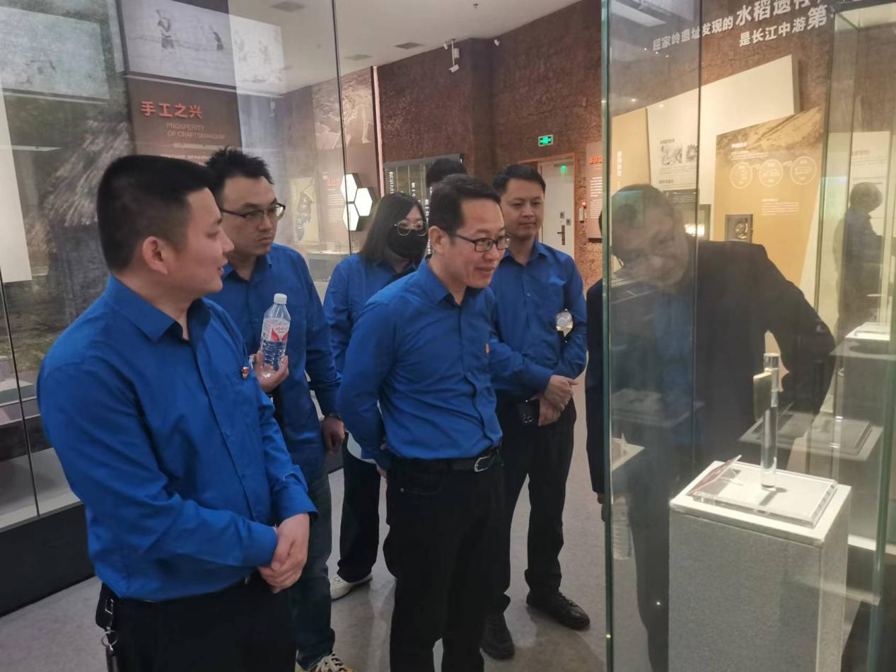 物業(yè)支部的同志們懷著探尋屈家?guī)X文化內(nèi)涵和價值的濃厚興趣,先后參觀了屈家?guī)X遺址博物館和遺址公園內(nèi)遺址核心區(qū)保護、復原展示現(xiàn)場。伴隨著博物館講解員聲情并茂的解說,同志們認真地觀看著各種珍貴文物、圖片資料和雕塑,仿佛穿越到了五千年前,身臨其境屈家?guī)X先民生產(chǎn)、生活的場景。