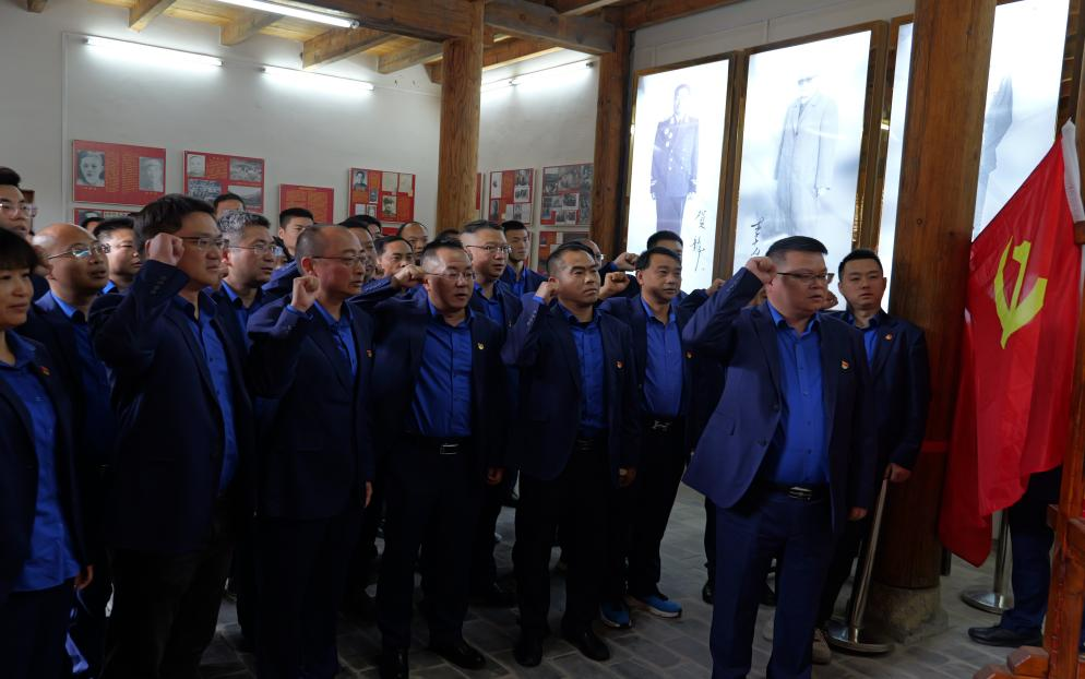 全體黨員對著黨旗莊嚴(yán)宣誓,重溫入黨誓詞,共同表達(dá)對共產(chǎn)黨的無比忠誠和對革命烈士犧牲精神的無限敬畏。