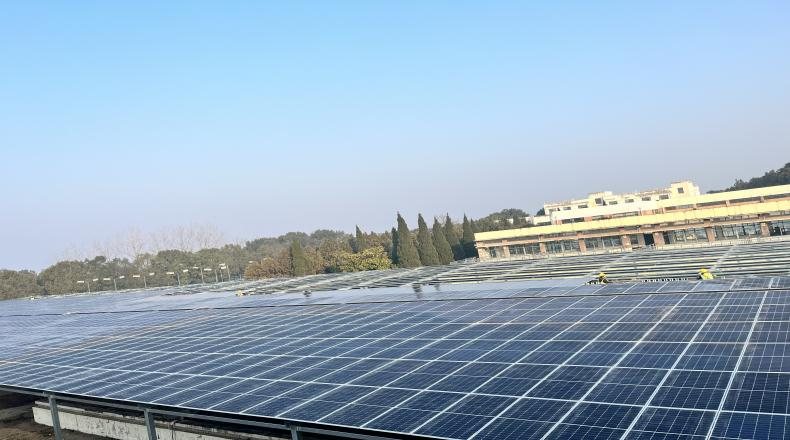 光伏產(chǎn)品是近年來推動我國外貿(mào)穩(wěn)規(guī)模、優(yōu)結(jié)構的“新三樣”之一,水務集團積極響應國家“雙碳”政策,在充分調(diào)研基礎上,于2023年11月選址第二水廠,充分利用構筑物上方空間,架設光伏系統(tǒng)和配套電氣設備,采用目前較為成熟的分布式光伏發(fā)電技術,裝機總?cè)萘?.968兆瓦,安裝光伏板1669塊。