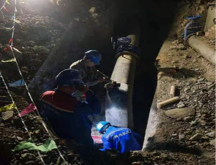 24日晚22時開始停水施工,工作人員在作業(yè)坑內(nèi)各司其職,排水、切割、加裝管夾、安裝三通、加裝閥門……工作現(xiàn)場緊鑼密鼓,人機(jī)作業(yè)井井有條,經(jīng)過5小時連續(xù)施工,圓滿完成碰頭施工,比原計劃提前3小時通水。