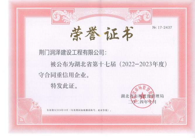 憑著“誠(chéng)信為本、質(zhì)量為根”的堅(jiān)守,潤(rùn)澤公司連續(xù)兩年獲評(píng)荊門市和湖北?。?022-2023年度)“守合同重信用企業(yè)”,市場(chǎng)競(jìng)爭(zhēng)力和品牌影響力持續(xù)攀升。