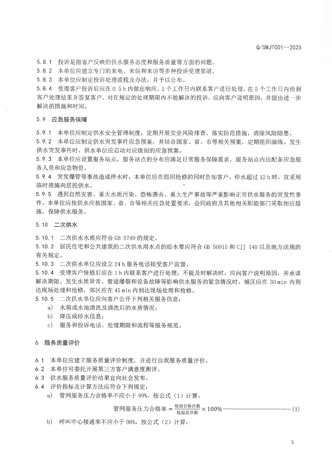 荊門(mén)水務(wù)集團(tuán)企業(yè)標(biāo)準(zhǔn)——供水服務(wù)