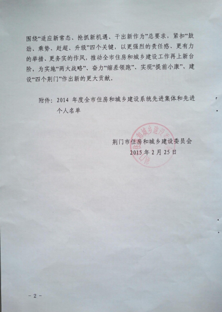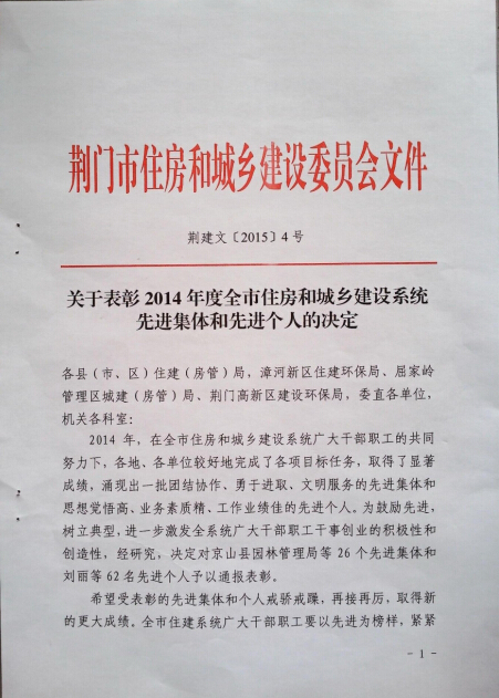 公司獲2014年度全市住房和城鄉(xiāng)建設(shè)系統(tǒng)先進(jìn)集體