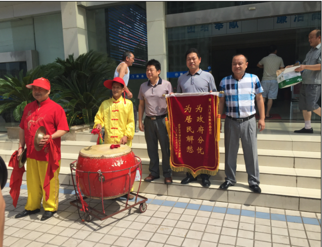 7月31日,虎牙關(guān)社區(qū)和用戶代表組織腰鼓隊到總公司送錦旗致謝。據(jù)悉,掇刀城南新區(qū)金苑大市場主、分水管網(wǎng)嚴重老化,水管破損而致停水。市供水總公司客服部門快速勘測報裝,維修處迅速組織施工,并調(diào)派應(yīng)急供水車在改造期間為商戶送水。