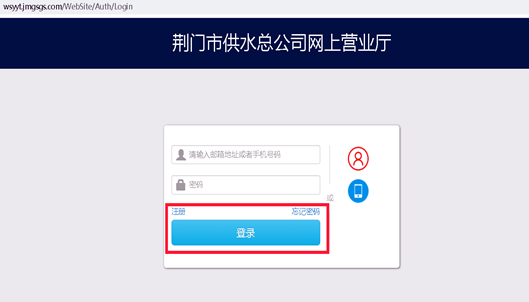 1.打開荊門市供水總公司網上營業(yè)廳,注冊賬號(已有賬號可以直接登錄),登錄網上營業(yè)廳。