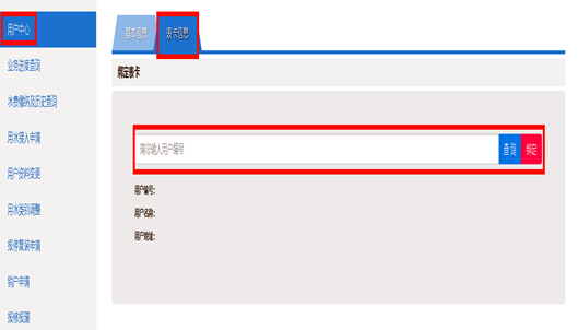 2.點擊“用戶中心”,選擇“表卡信息”,輸入10位數(shù)字用戶編號點擊“綁定。”