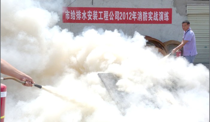 6月13日上午,經(jīng)過精心準備,給排水安裝工程公司組織所屬各項目部、各施工隊負責人、專(兼)職安全員共40余人,進行了安全教育培訓和消防滅火實戰(zhàn)演練。